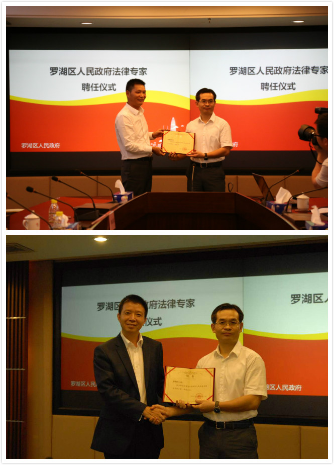 近日,罗湖区政府发文批复同意增加9人为罗湖区政府法律专家库专家,晟典律师事务所高级合伙人郭朝辉、钟刚强律师在名单之列。9月7日下午,罗湖区政府在罗湖管理中心大厦举行了法律专家聘任仪式,区长聂新平向各位法律专家颁发聘书。