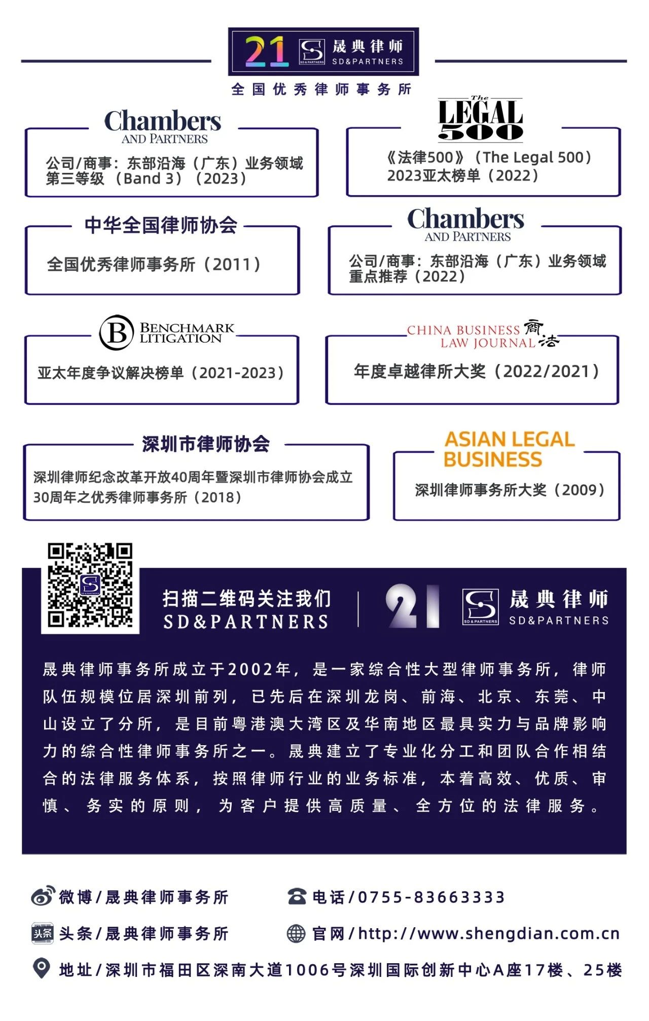 partner of sheng Dian law firm, responsible editor of sheng Dian lawyer review, member of the 11th marriage and family legal professional Committee of Shenzhen lawyers association, legal service lawyer of Shenzhen Federation of trade unions, young lawyer of Shenzhen lawyers association yue reading" extreme reader ", with the People's Republic of China independent director qualification of listed companies.