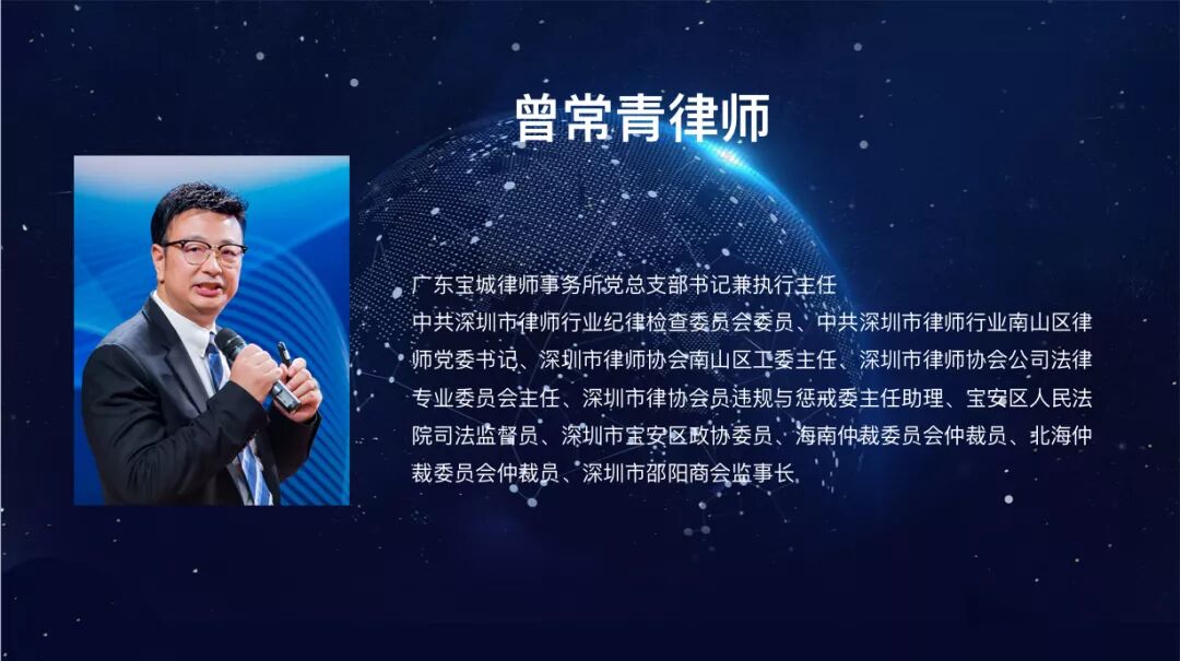 广东宝城律师事务所党总支部书记兼执行主任曾常青律师作《宝城突破传统寻求新发展》主题演讲。