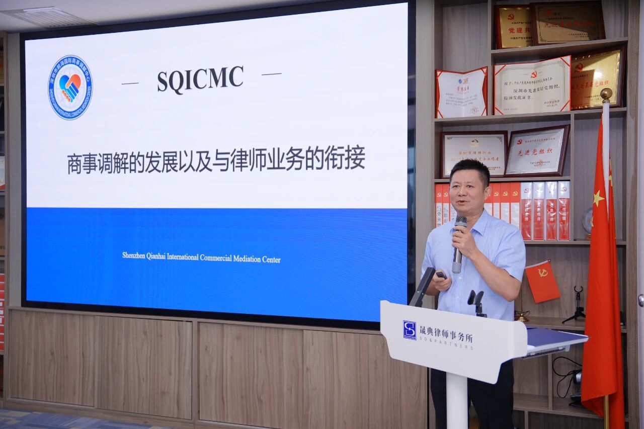 晟典主任、调解中心理事王永敬律师在致辞中,首先对与会嘉宾表示欢迎,并简要介绍了晟典的发展概况。他充分肯定了商事调解在化解多元化纠纷中的积极作用,指出调解具有高效、便捷、成本低等优势,并对前海国际商事调解中心在推动商事调解服务方面的工作表示高度认可。王永敬主任表示,晟典将持续深化与前海国际商事调解中心的合作,共同推进调解机制建设,为构建健康、专业的调解生态环境贡献力量。