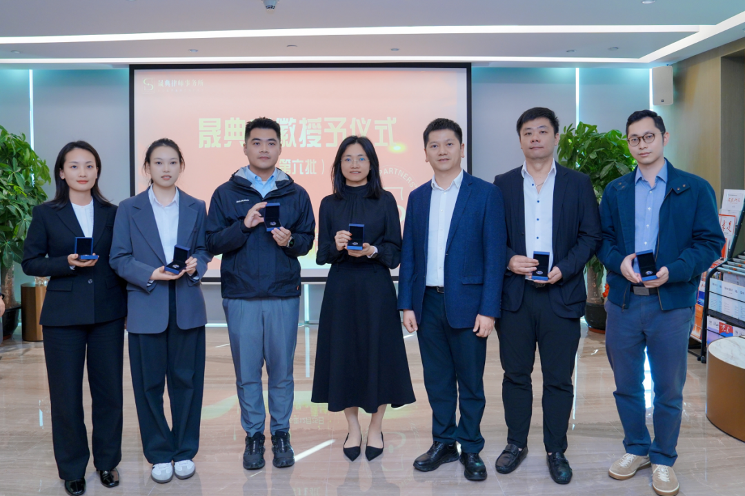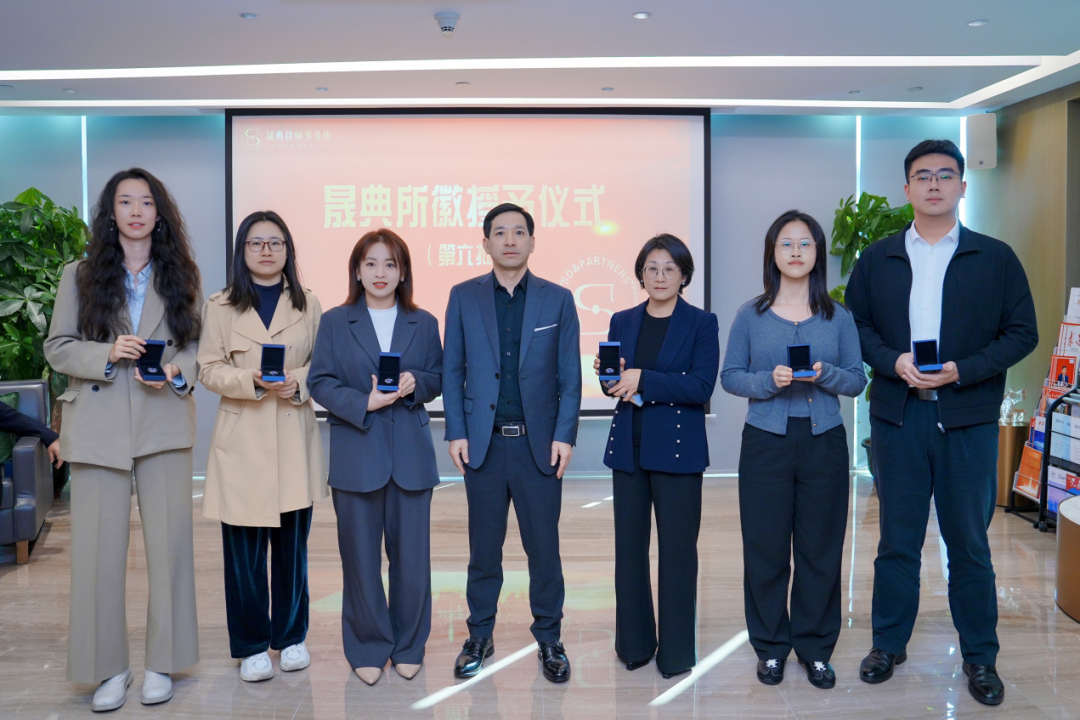 高级合伙人叶秀进律师向新同事授予晟典所徽